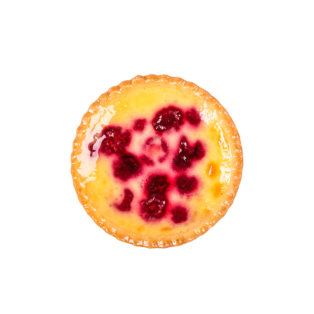 Fresh raspberries with Gumnut homemade baked custard filling in a short crust pastry base.