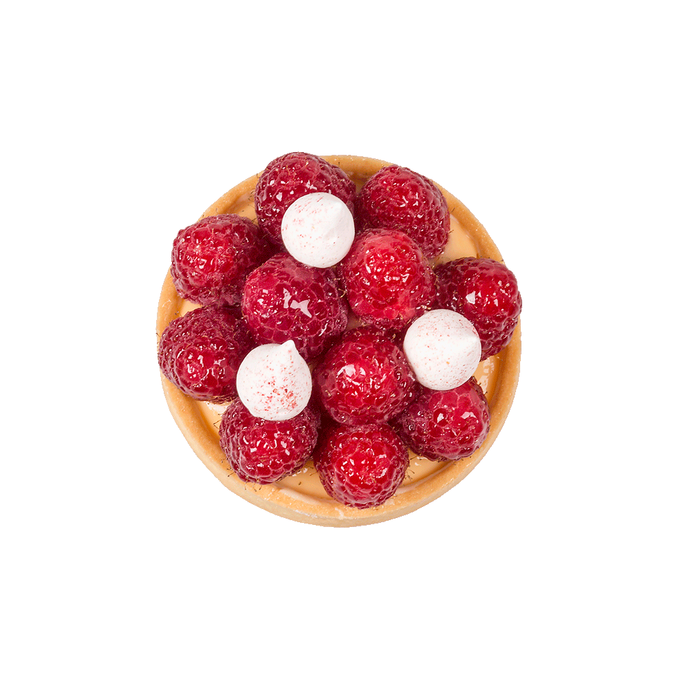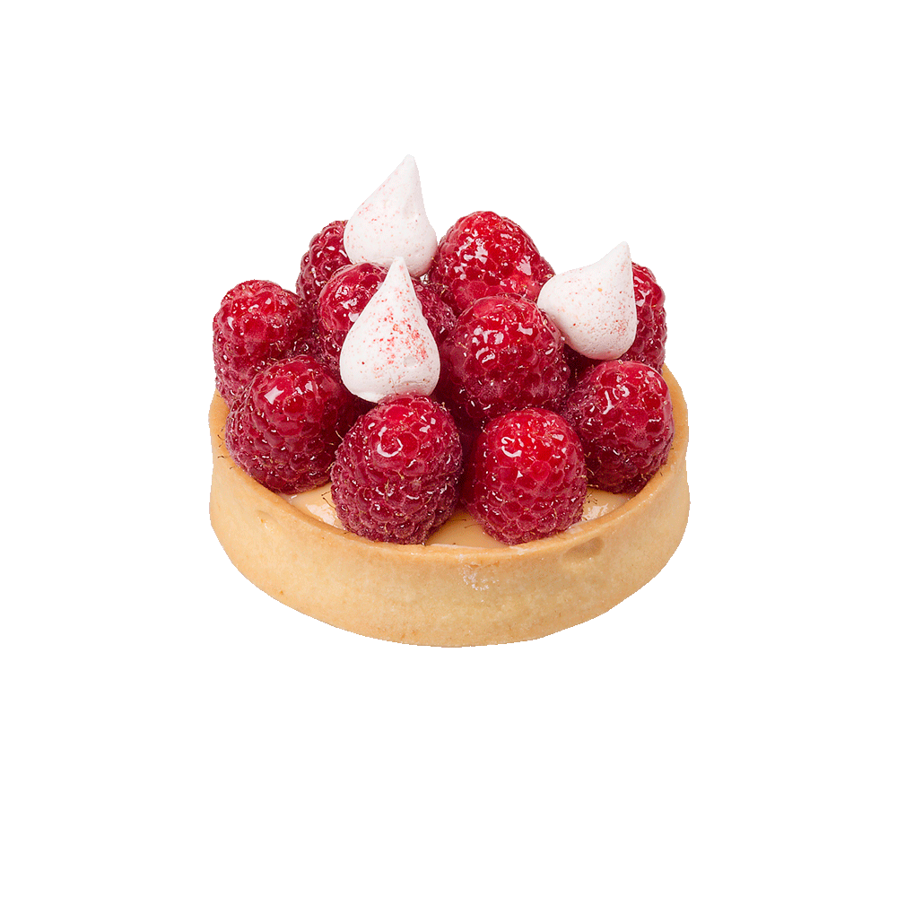 Fresh raspberries individually arranged by our Master Pastry Chef on a short crust pastry tart base that is filled with crême pâtissière